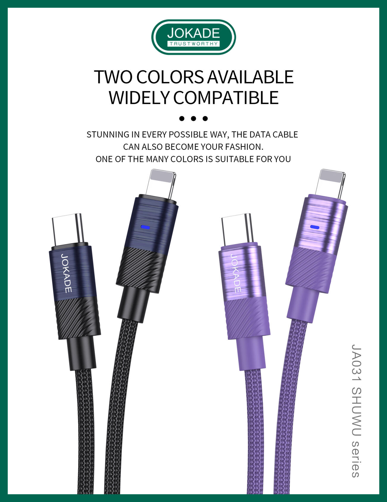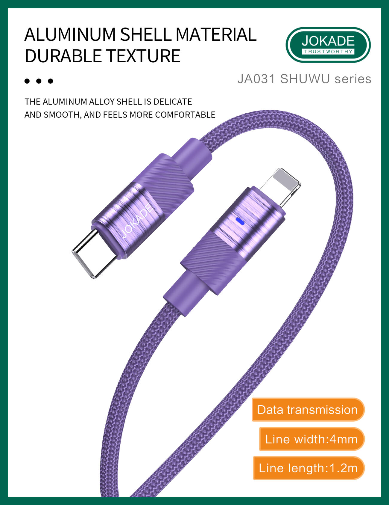 JA031 SHUWU Series Intelligent Power-off Fast Charging Data Cable (USB-C to Lightning)